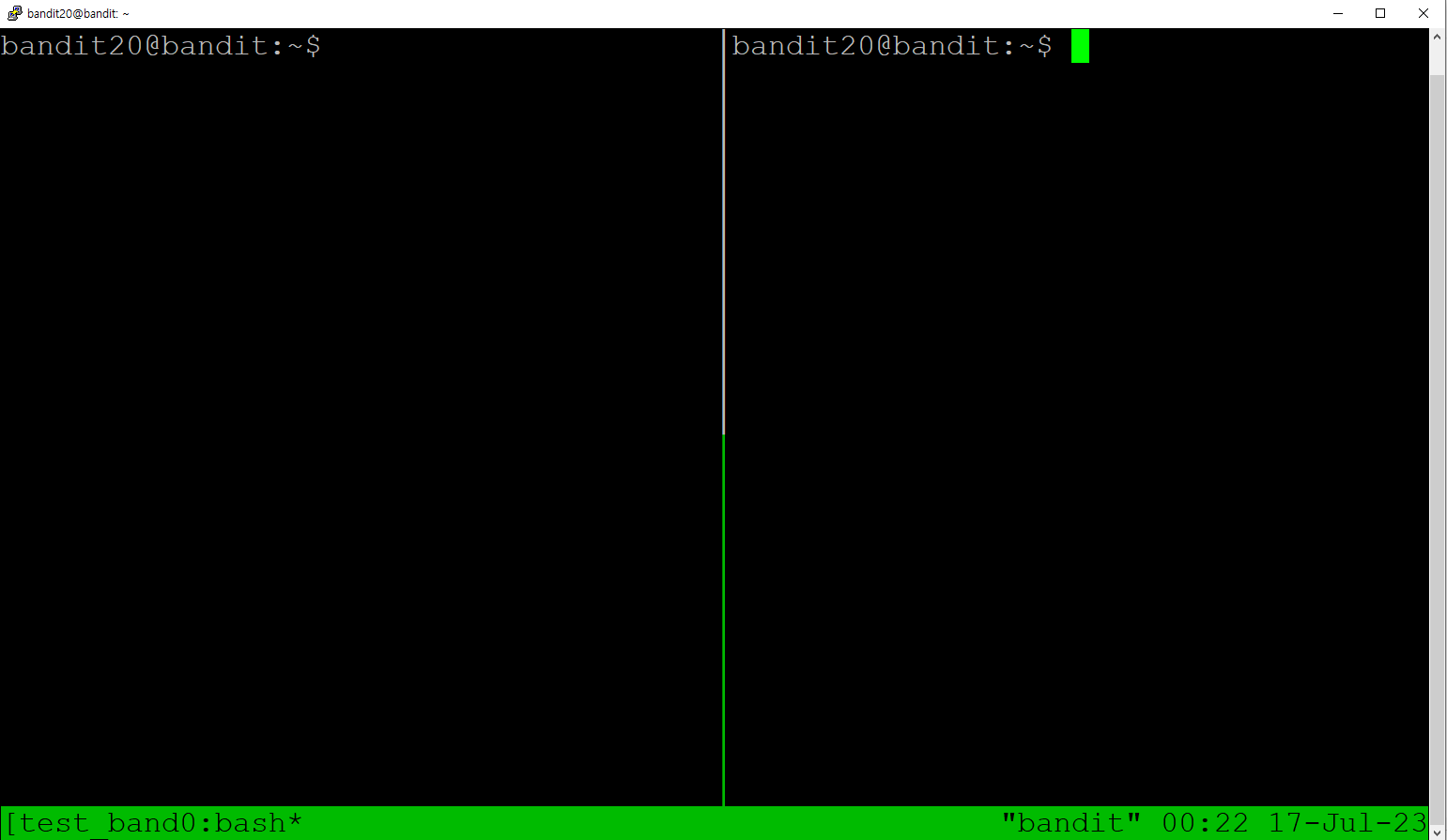 문제에서 세션을 분리하는 명령어들 (screen, tmux 등)을 알려주었으며 그중에 tmux 명령어를 사용해서 test_bandit20이라는 세션을 하나 분리 하였다.