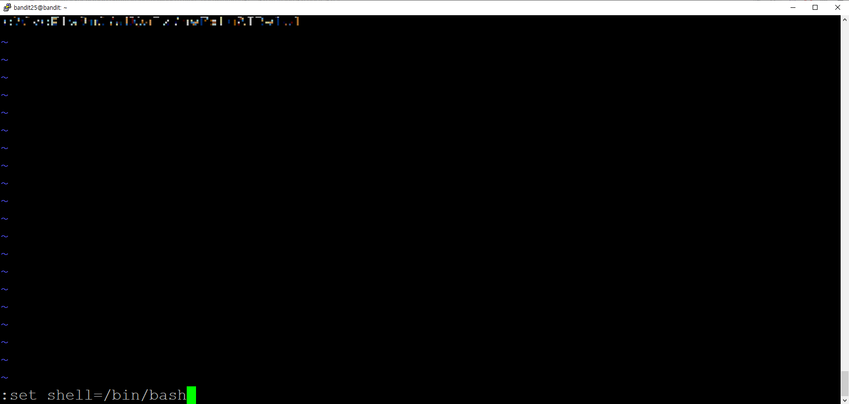 이제 bandit26 계정의 로그인 쉘을 /bin/bash 설정하고 shell 명령어를 입력하면 bandit26 계정으로 로그인할 수 있다.