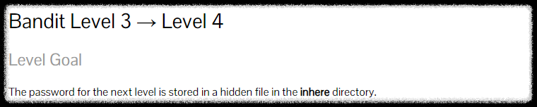 다음 단계로 넘어가는 암호는 'inhere' 라는 디렉토리 안의 숨겨진 파일에 저장되어있다고 한다.