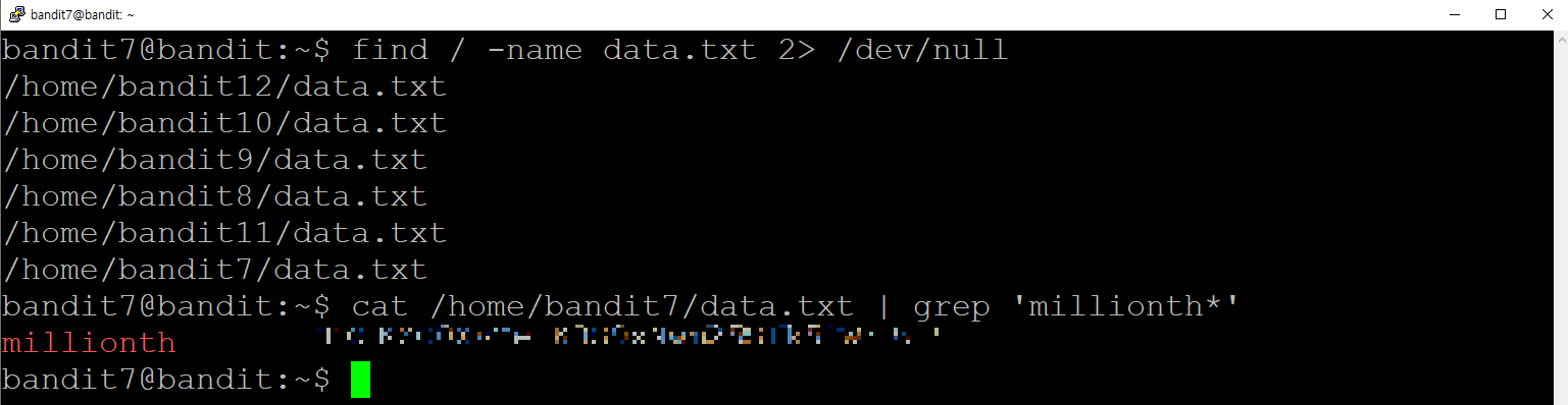 cat /home/bandit7/data.txt | grep 'millionth*'