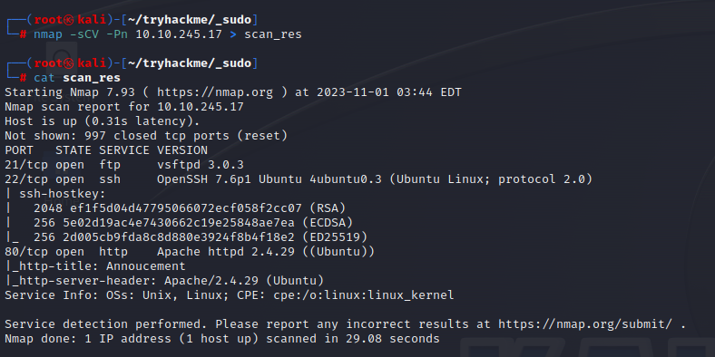 nmap -sCV -Pn 10.10.245.17 > scan_res